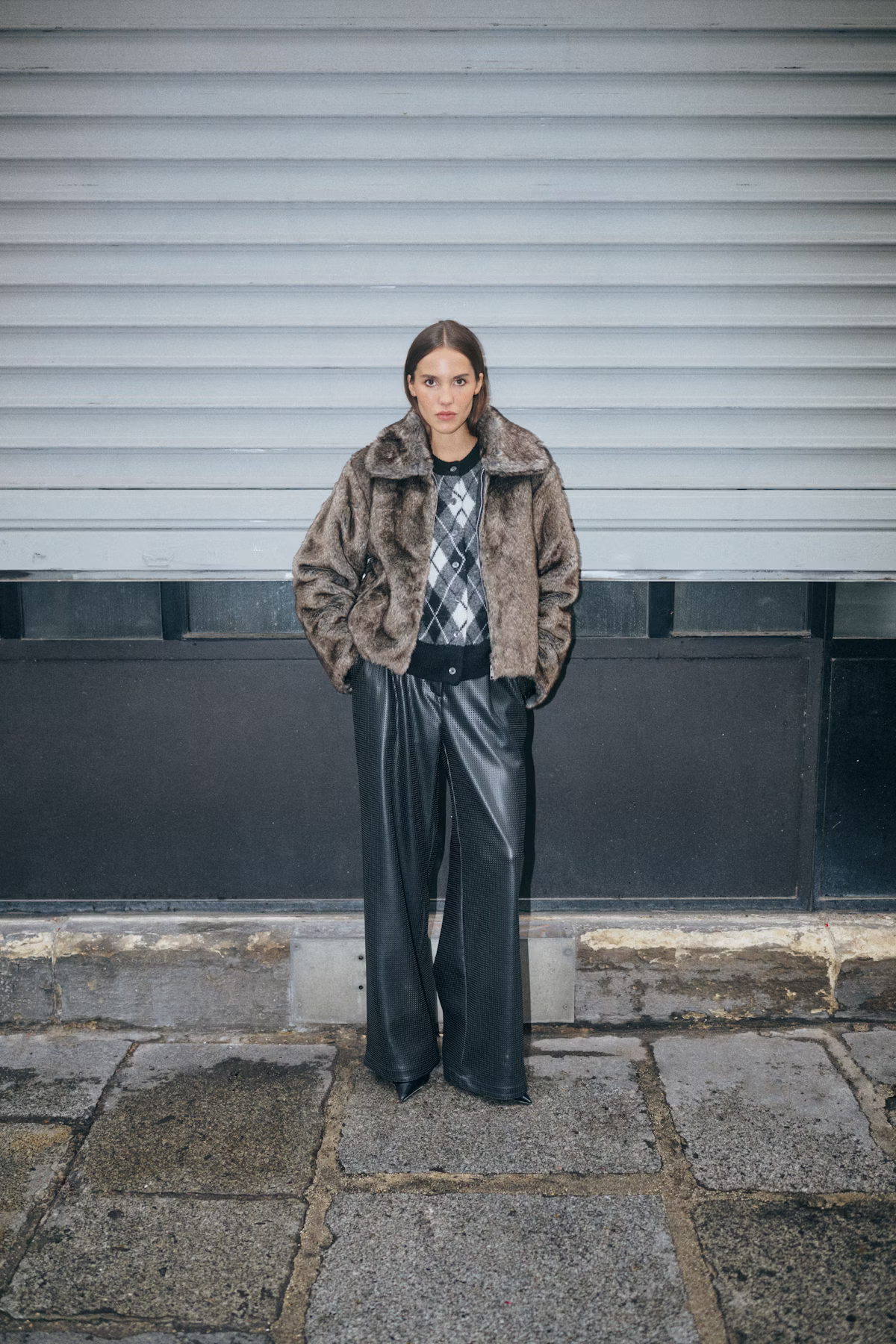 Jakki úr gervifeldi með mjúku, áferðarlfallegu yfirborði.  Afslappað og fellegt snið á jakka. Frekar stórar stærðir.