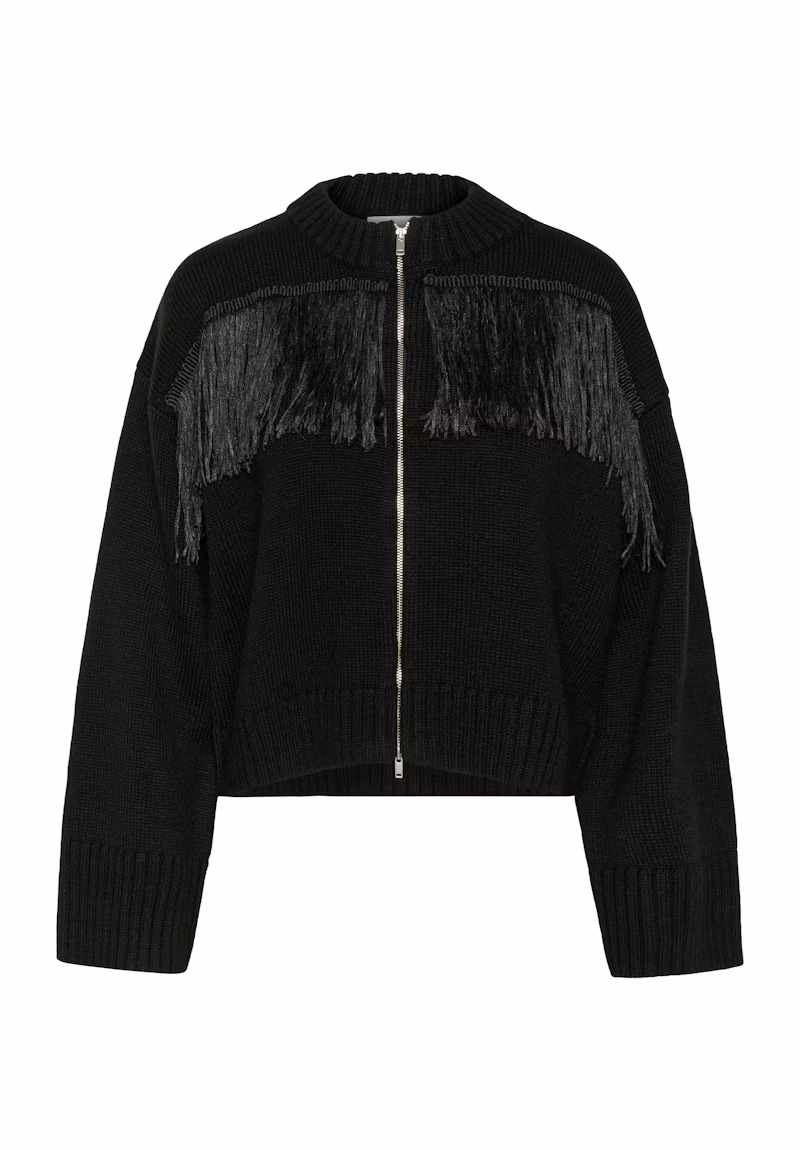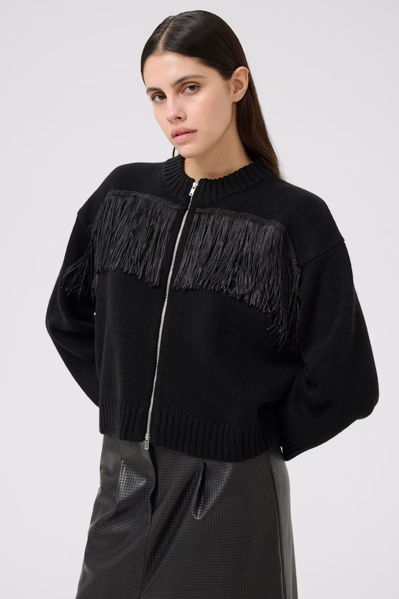 Smart jakkapeysa með kögri og rennilás.