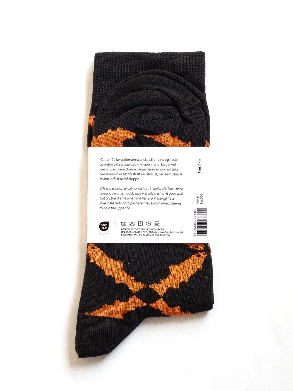 Lax. Vandaðir sokkar með fiskaþema, Lax, Þorskur, Skata, Síldarbein í stærðum 36-39 og 40-46