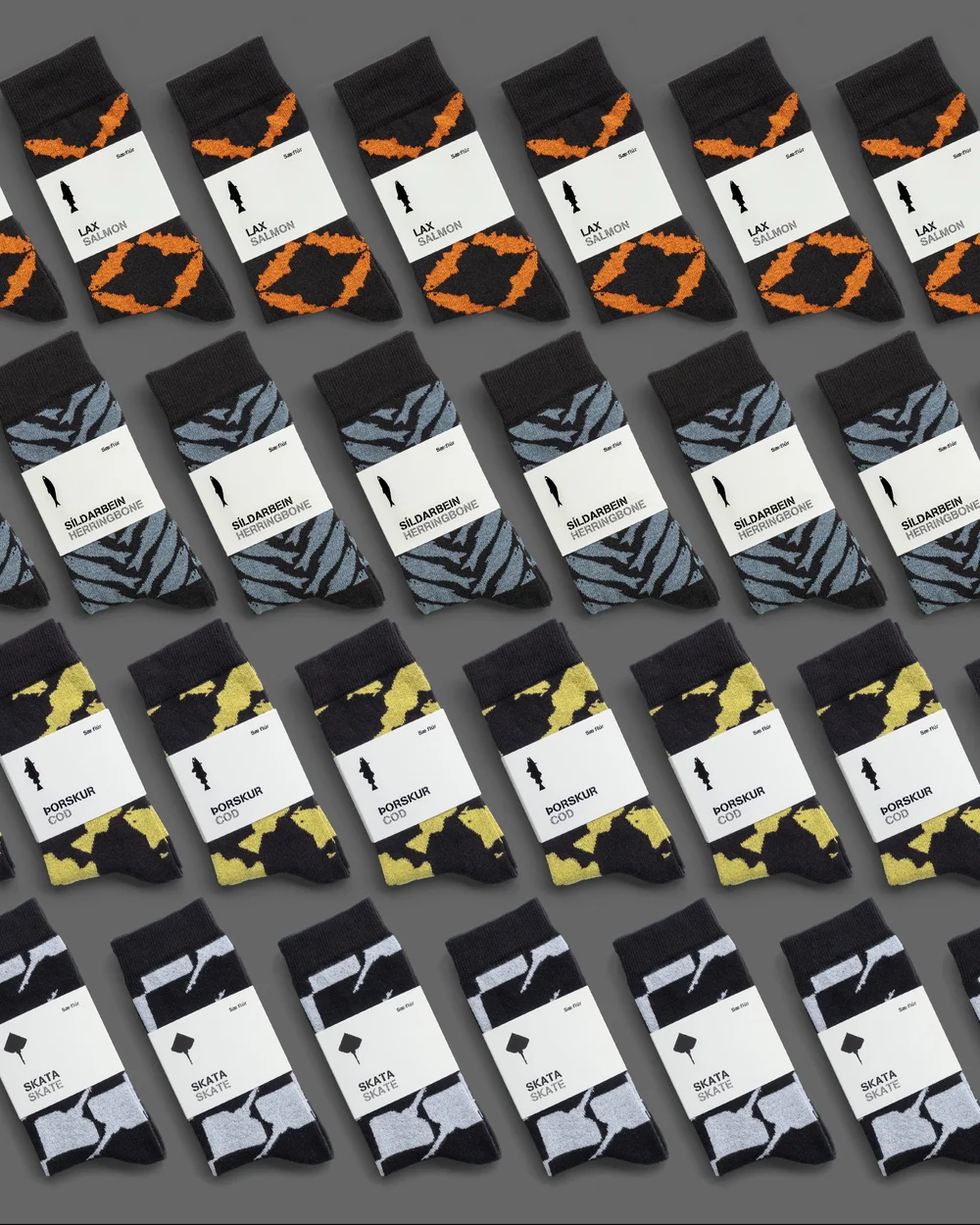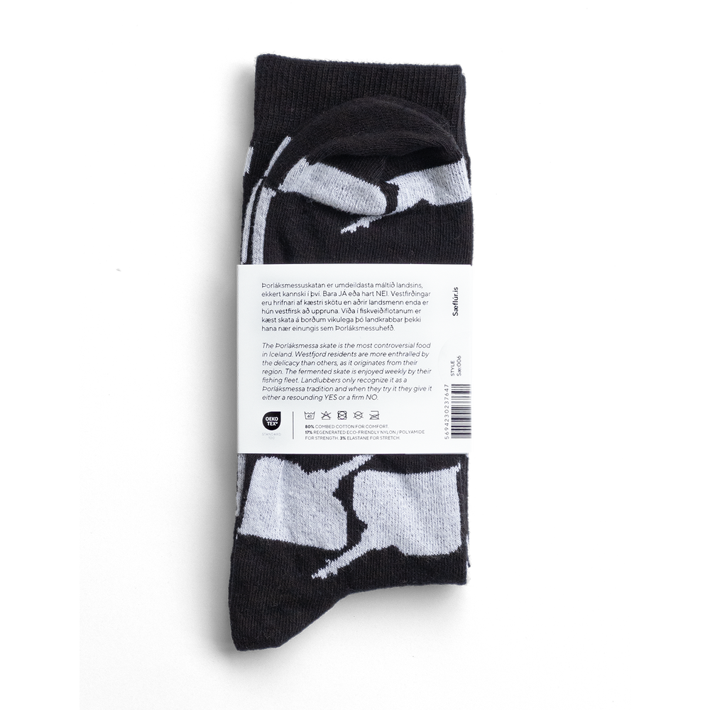 Skata. Vandaðir sokkar með fiskaþema, Lax, Þorskur, Skata, Síldarbein í stærðum 36-39 og 40-46