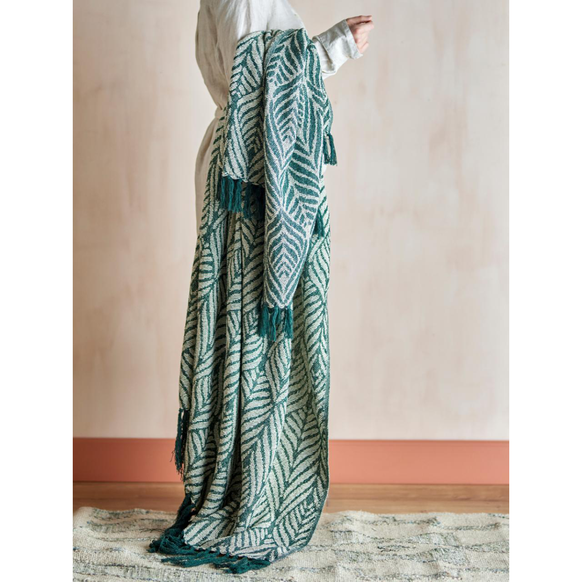 Mælum með að þrífa teppið á 30 gráðum fyrir notkun svo falli minna af því. Teppið er úr endurunnum bómul.